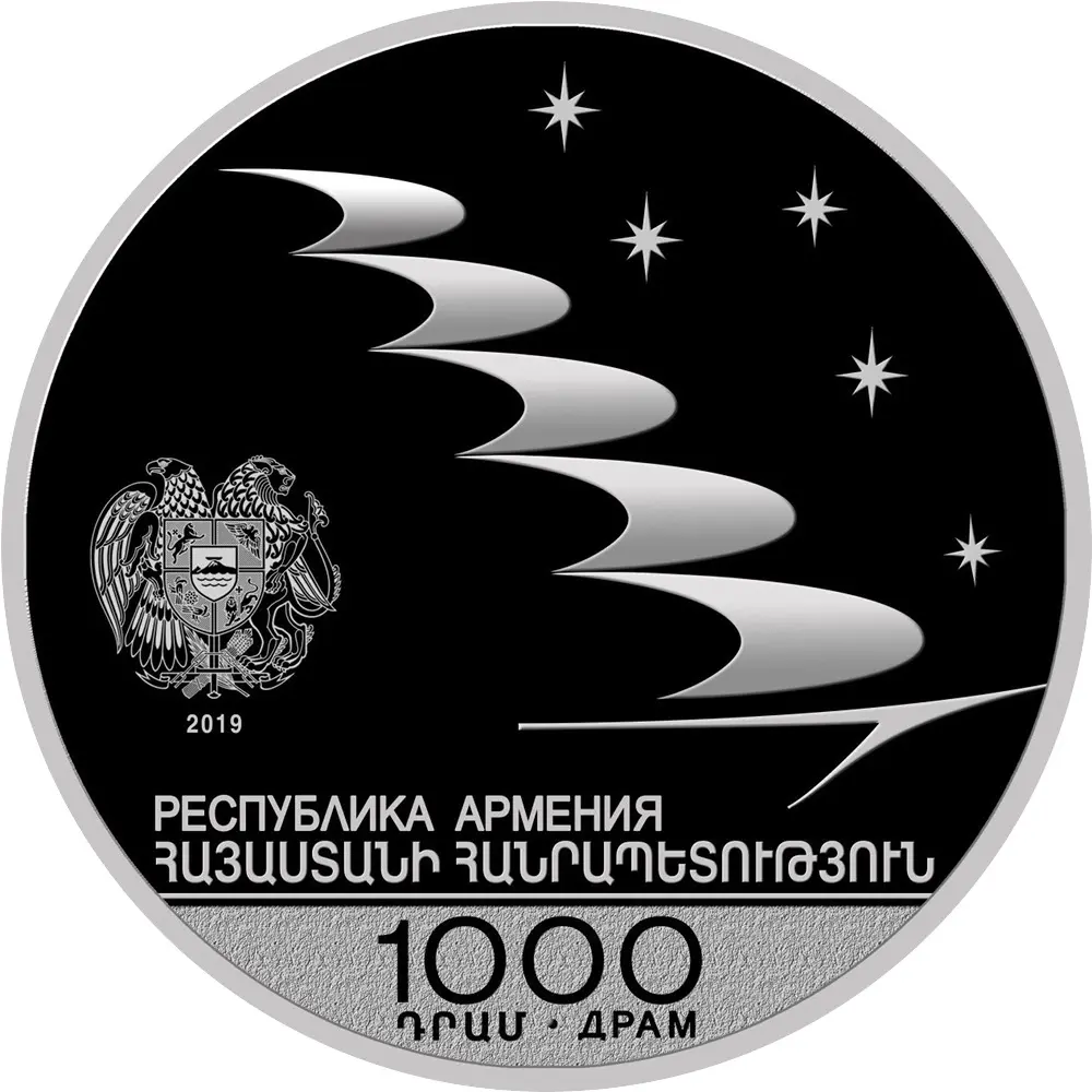 На аверсе изображён герб Республики Армения расположен год эмиссии - «2019». В правой части изображены паруса и звезды, соответствующие количеству государств-членов ЕАЭС. Надписи отчеканены на армянском и русском языках: номинальная стоимость - «1000 ԴՐԱՄ / ДРАМ». Надпись по окружности: «ՀԱՅԱՍՏԱՆԻ ՀԱՆՐԱՊԵՏՈՒԹՅԱՆ» / «РЕСПУБЛИКА АРМЕНИЯ».