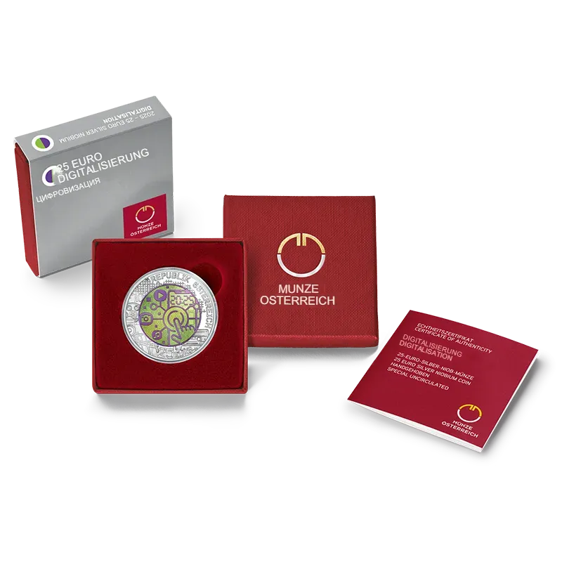 С серебряной ниобиевой монетой 2025 года „Оцифровка“ мы поражаемся этому технологическому прогрессу и в то же время знаем: перемены продолжаются. Он формирует наше общество – и наше будущее.