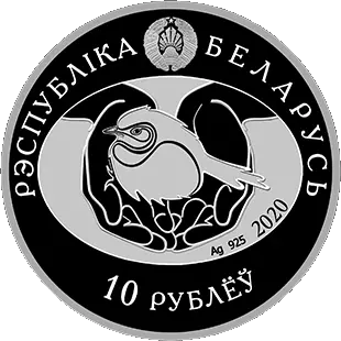 вверху – рельефное изображение Государственного герба Республики Беларусь, по кругу надпись: РЭСПУБЛІКА БЕЛАРУСЬ; в центре в овале – изображение птенца на стилизованных ладонях, под ним справа – год чеканки (на серебряной монете – проба сплава); внизу – номинал: 10 РУБЛЁЎ (на серебряной) и 1 РУБЕЛЬ (на медно-никелевой).