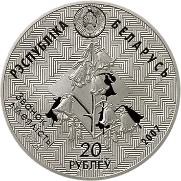 на фоне орнаментального полотна расположены: вверху – изображение Государственного герба Республики Беларусь и надпись – РЭСПУБЛІКА БЕЛАРУСЬ, в центре – цветущее растение; внизу надпись: ЗВАНОК ЛІЛЕЯЛІСТЫ, указаны год чеканки (на серебряной – проба сплава) и номинал – 20 РУБЛЁЎ (на серебряной) и 1 РУБЕЛЬ (на медно – никелевой).