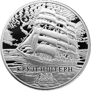 вверху – рельефное изображение Государственного герба Республики Беларусь и по кругу надпись: РЭСПУБЛІКА БЕЛАРУСЬ; в центре монет на фоне навигационной морской карты – стилизованное изображение розы ветров (на серебряной – с нанесенной голограммой); внизу номинал – 20 РУБЛЁЎ (на серебряной) и 1 РУБЕЛЬ (на медно-никелевой), слева от него – год чеканки (на серебряной справа – проба сплава и фирменный (товарный) знак Монетного двора Польши).