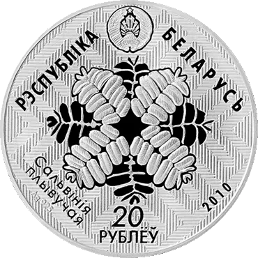 на фоне орнаментального полотна расположены: вверху – рельефное изображение Государственного герба Республики Беларусь и надпись: РЭСПУБЛІКА БЕЛАРУСЬ; в центре – изображение растения сальвинии плавающей; под ним номинал: 20 РУБЛЁЎ (на серебряной) и 1 РУБЕЛЬ (на медно-никелевой); слева надпись: САЛЬВІНІЯ ПЛЫВУЧАЯ и проба сплава (на серебряной); справа – год чеканки.