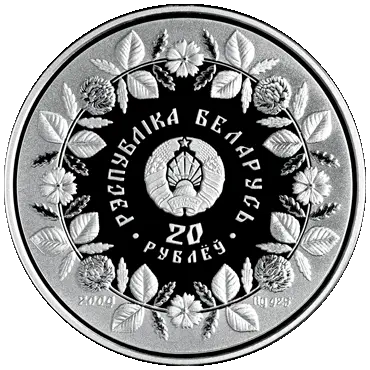 в центре — рельефное изображение Государственного герба Республики Беларусь и надписи: вверху — РЭСПУБЛIКА БЕЛАРУСЬ, внизу номинал — 20 РУБЛЁЎ (на серебряной) и 1 РУБЕЛЬ (на медно-никелевой); по кругу монеты — стилизованный венок из листьев и цветов василька и клевера, представляющий собой соцветие ремесел, тесно сплетенных в бесконечность круга (символ долговечности, символ счастья); слева — год чеканки, на серебряной справа — проба сплава.