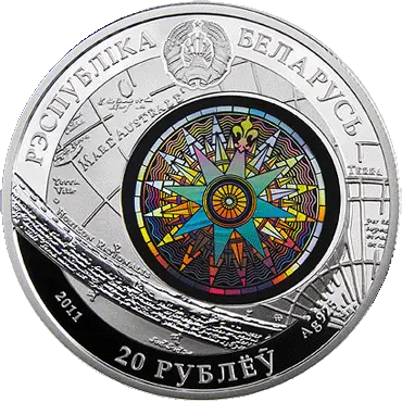 вверху – рельефное изображение Государственного герба Республики Беларусь и по кругу надпись: РЭСПУБЛІКА БЕЛАРУСЬ; в центре монет на фоне навигационной морской карты – стилизованное изображение розы ветров (на серебряной – с нанесенной голограммой); внизу номинал – 20 РУБЛЁЎ (на серебряной) и 1 РУБЕЛЬ (на медно-никелевой), слева от него – год чеканки (на серебряной справа – проба сплава и фирменный (товарный) знак Монетного двора Польши).