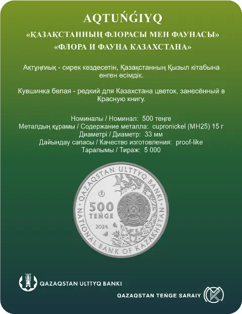 Оформление дополнено элементами национального орнамента, характерными для монет Казахстана.