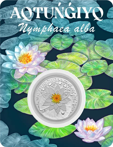 Размещено название растения — на казахском языке и латинском (обычно Nymphaea).