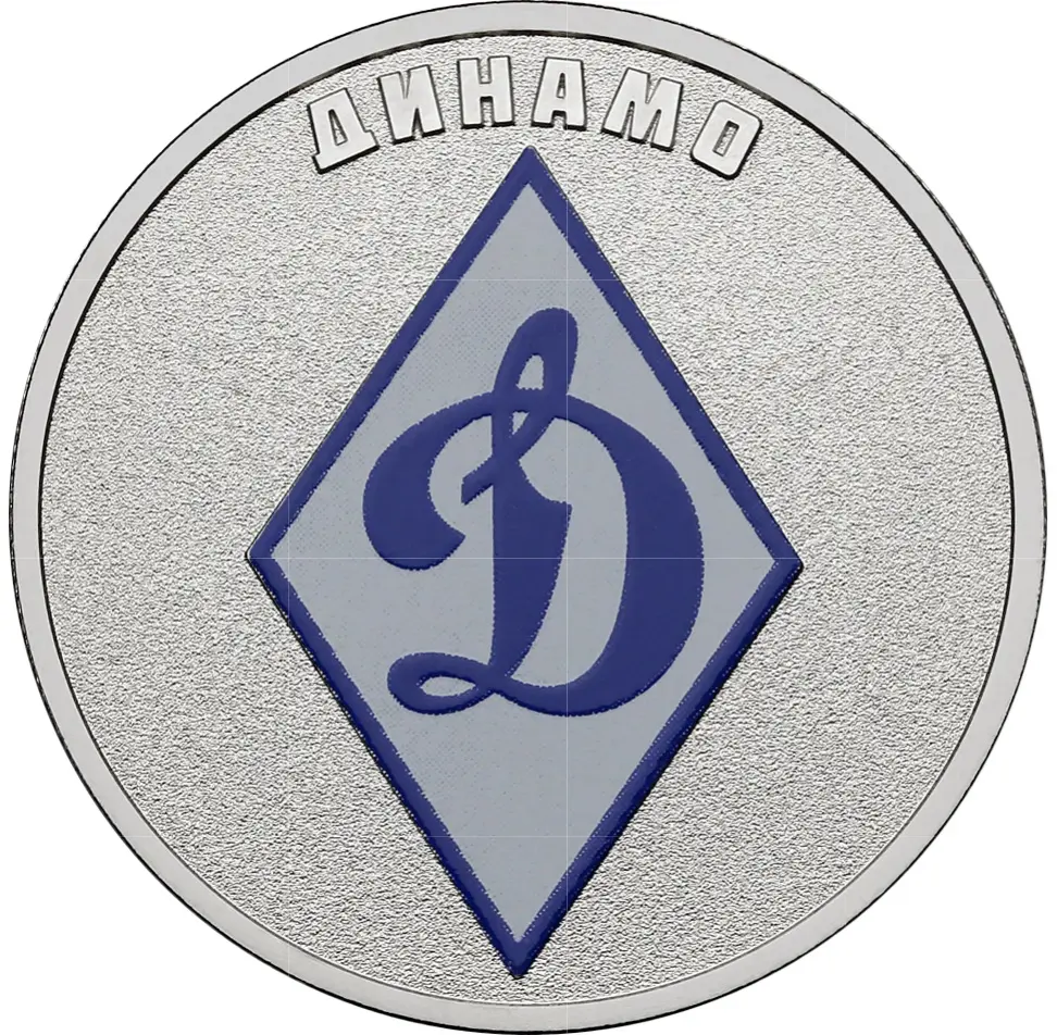 выполненное в цвете изображение символики Всероссийского физкультурно-спортивного общества «Динамо»; вверху по окружности – рельефная надпись «ДИНАМО».