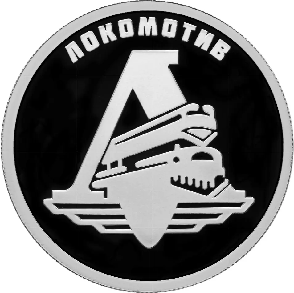 рельефная эмблема Российского физкультурно-спортивного общества «Локомотив»; вверху по окружности – рельефная надпись «ЛОКОМОТИВ».