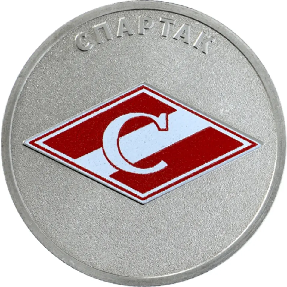 выполненное в цвете изображение символики Российского физкультурно-спортивного общества «Спартак»; вверху по окружности – рельефная надпись «СПАРТАК».