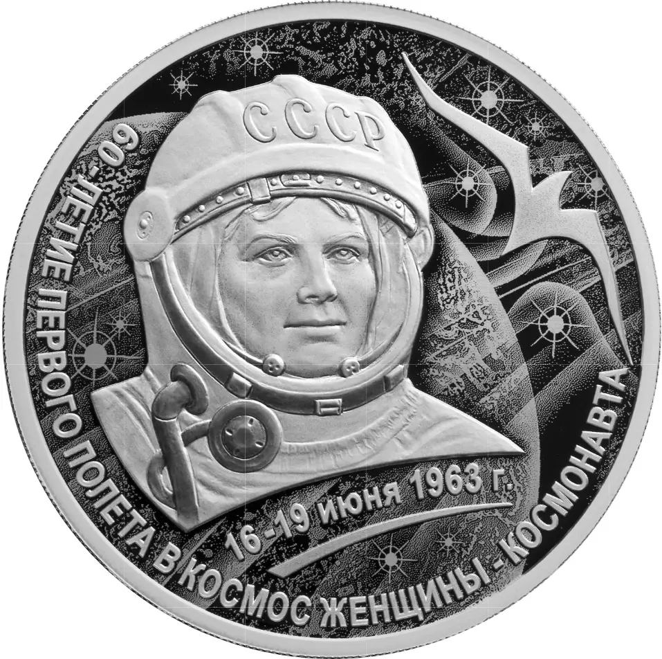 выполненные рельефом изображение портрета В.В. Терешковой в скафандре и стилизованное изображение чайки на фоне выполненных в технике лазерного матирования изображений Земли, звездного неба и абстрактных линий, символизирующих полет в космосе; рельефные надписи: под портретом, подчеркнутая декоративной линией, – «16–19 июня 1963 г.», внизу слева по окружности – «60-ЛЕТИЕ ПЕРВОГО ПОЛЕТА В КОСМОС ЖЕНЩИНЫ-КОСМОНАВТА».