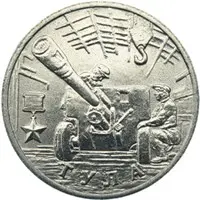 двое рабочих у пушки в заводском цеху, слева - медаль "Золотая Звезда", внизу по окружности - надпись: "ТУЛА".