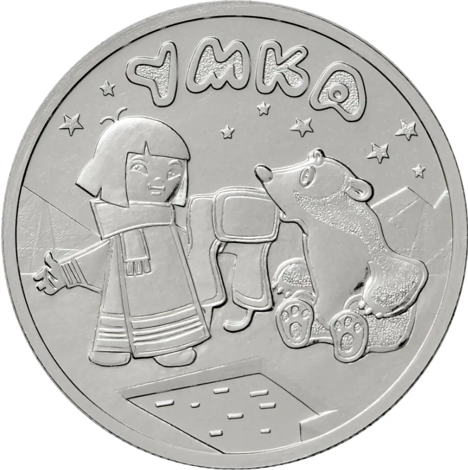 рельефное изображение героев мультфильма «Умка» на фоне льда и звездного неба; вверху — надпись: «УМКА».