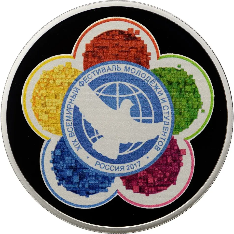 на зеркальном поле диска – изображение официального логотипа XIX Всемирного фестиваля молодежи и студентов.