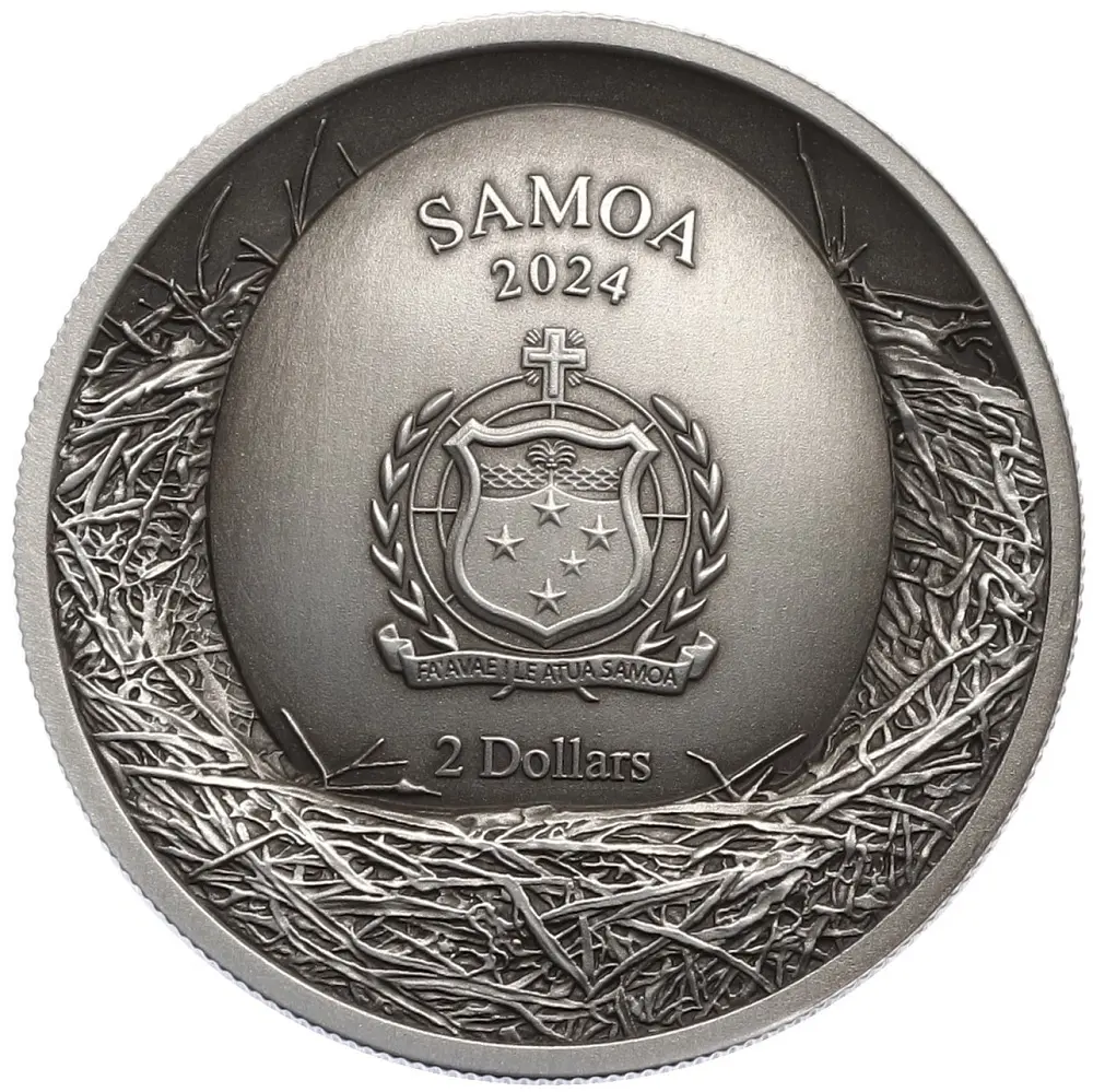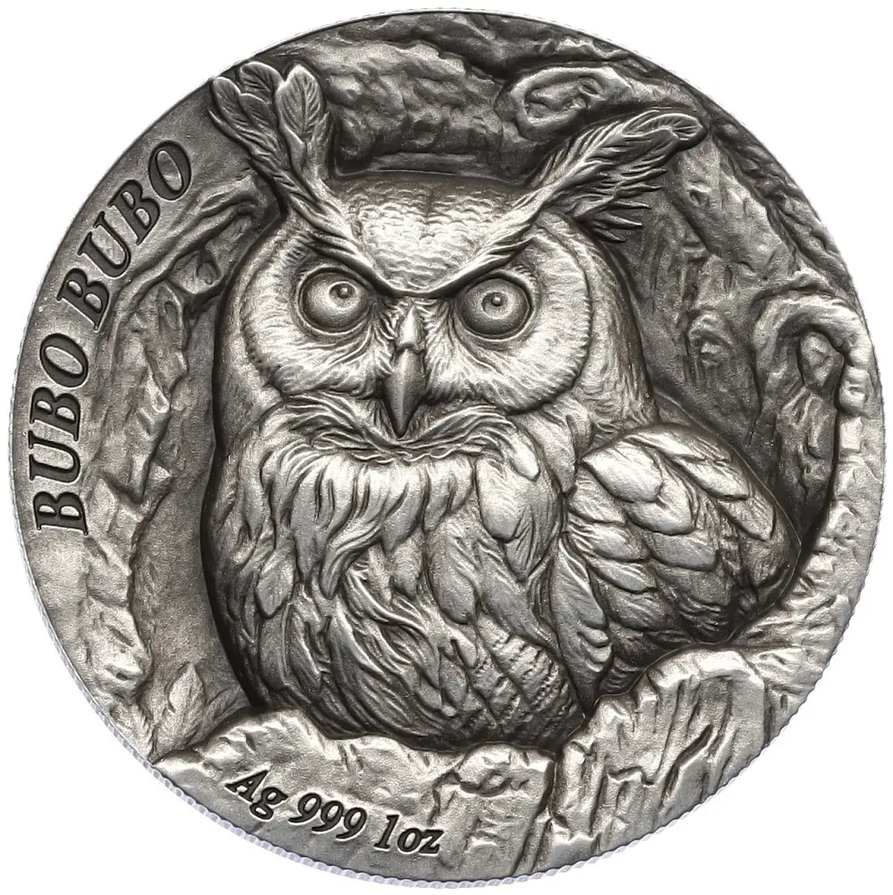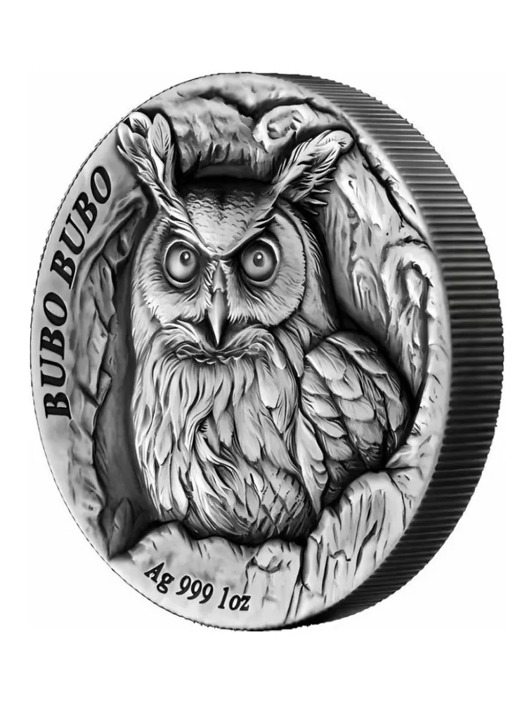 На реверсе серебряной монеты изображён филин (Bubo bubo) — крупнейший представитель семейства совиных, символ силы, ночного господства и абсолютного хищнического превосходства. В рамках серии Tree Hollow филин показан выглядывающим из дупла дерева, что создаёт ощущение скрытой, но контролируемой угрозы.