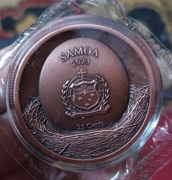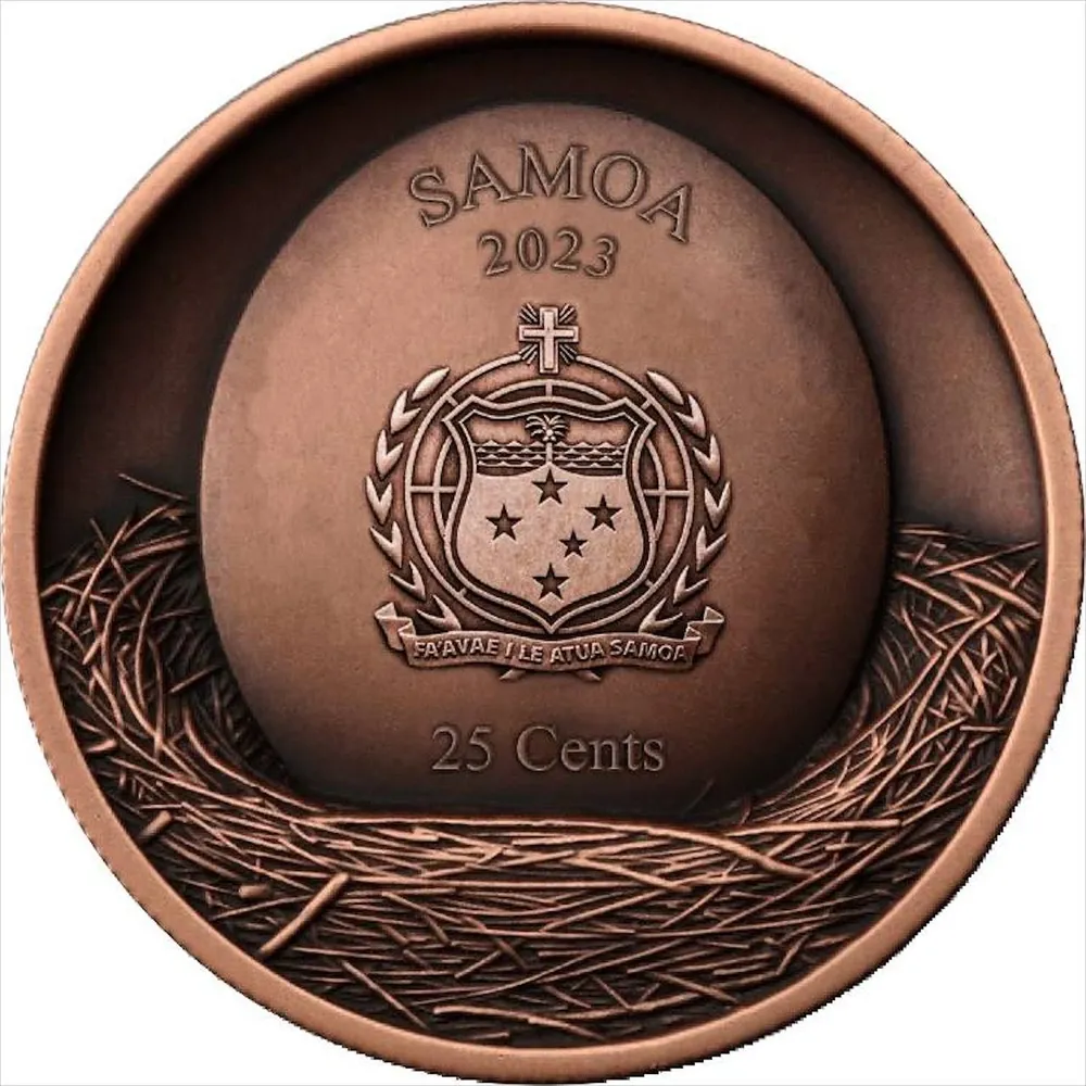 На аверсе монеты размещён государственный герб Самоа, выполненный в классической композиции и умеренном рельефе.