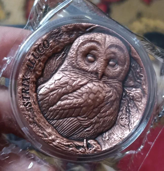 Образ неясыти передаёт ощущение ночного наблюдателя, скрытого в тени, что гармонично сочетается с темой дупла и камерным форматом монеты.