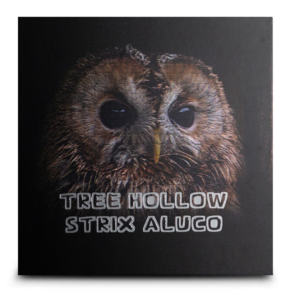 Реверс полностью посвящён изображению совы Strix aluco (неясыть), показанной выглядывающей из дупла дерева — центрального художественного мотива серии Tree Hollow.