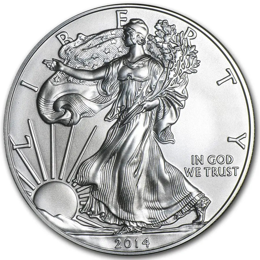 Вдоль верхнего края монеты выгравировано слово «LIBERTY» (Свобода), а справа красуется надпись «IN GOD WE TRUST» («На Бога уповаем») — национальный девиз США. В нижней части указан год выпуска — 2014. Этот аверс — не просто изображение, а целая история о ценностях, которые бережёт Америка: свободе, мире, силе и вере.